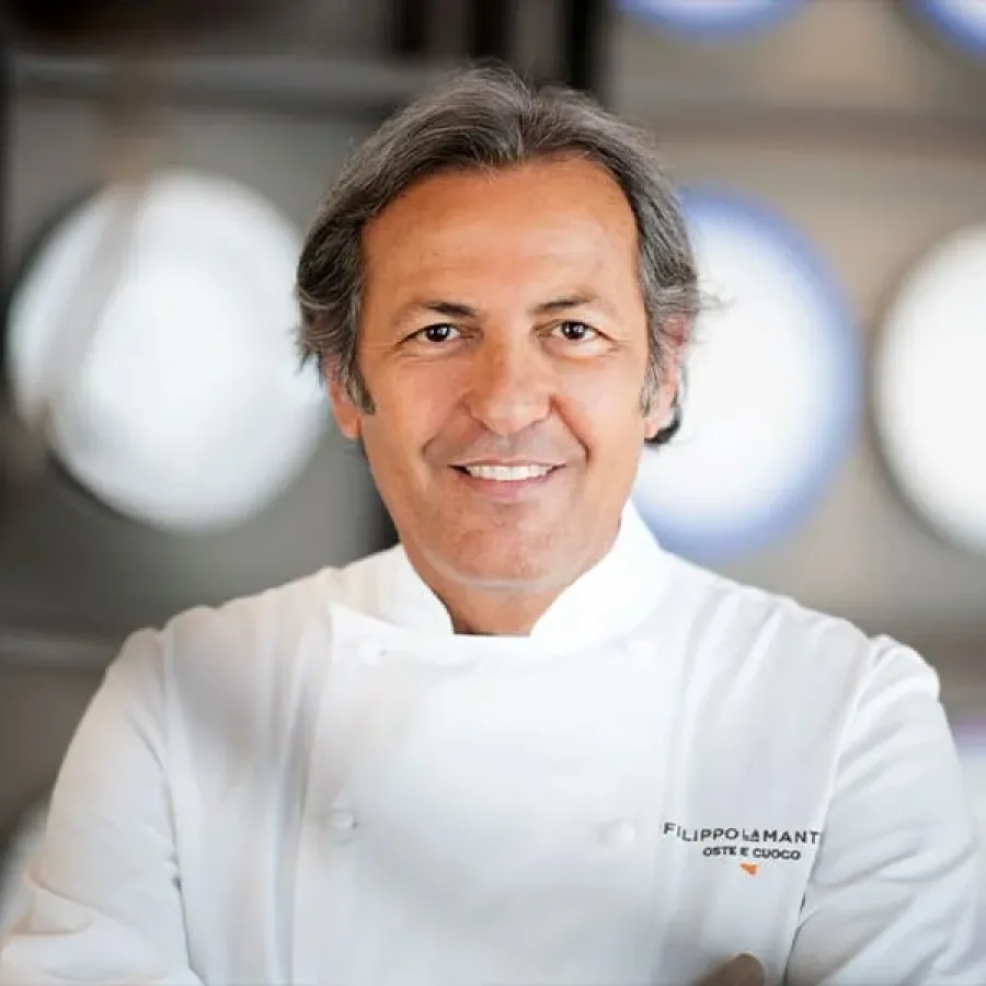 Filippo La Mantia è uno chef e imprenditore siciliano nato a Palermo, noto per la sua cucina mediterranea e per aver rivoluzionato la cucina tradizionale siciliana eliminando aglio e cipolla dai suoi piatti. È conosciuto anche come “cuoco oste”, un titolo che riflette la sua idea di accoglienza e convivialità più che la formalità del ruolo di chef.
